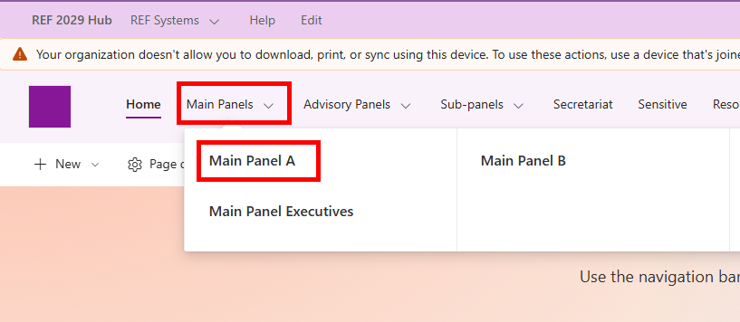 OneDrive and SharePoint are place to store files in the REF Hub. The My files section of OneDrive is meant for personal files that only you will have access to unless you share them. In SharePoint, everyone in the SharePoint group (i.e. Main Panel A, Sub-panel 12 Executive, etc.) will have access to the files you store there. Below are instructions on how to open OneDrive and SharePoint.
