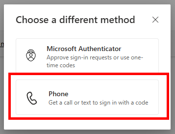 • Click on Phone, (please note, we only use text messages to authenticate, even though it mentions phone calls here)