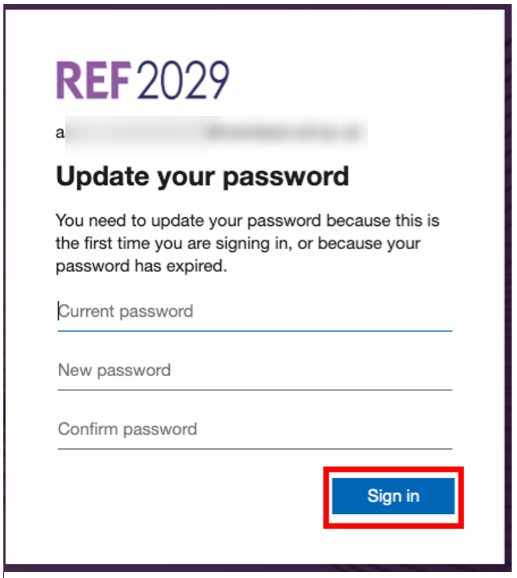 This guidance takes you through how to sign into the REF 2029 Hub for the first time.
