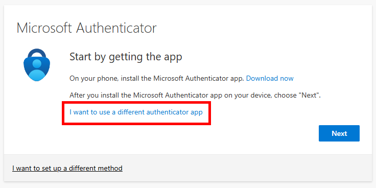 This method uses an alternative authenticator app on your mobile phone, (anything other than the Microsoft Authenticator app). If you already use a different authenticator app on your mobile phone, you can use that to authenticate yourself.