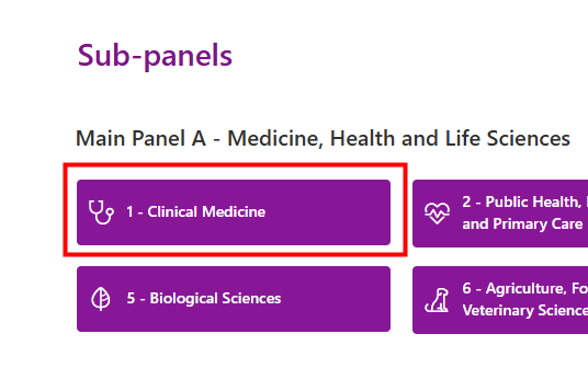 • For example, if you were a member of sub-panel 1 you would click on Sub-panels and then Sub-panel 1