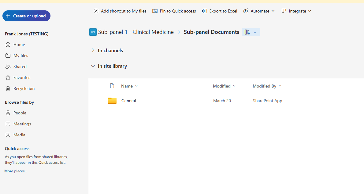 • You will then see any panels/sub-panels you are a member of; click on the panel/sub-panel. This link will then be added to the Quick access area