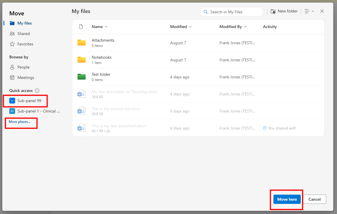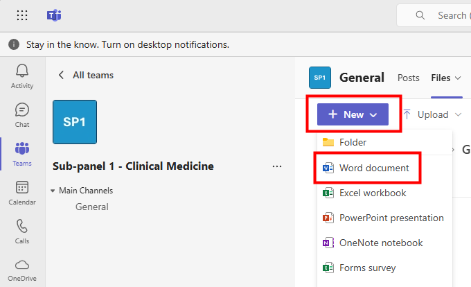 Members of the Secretariat will need to create documents and other files in the shared area for a panel or group so that everyone in that panel/group can access them.