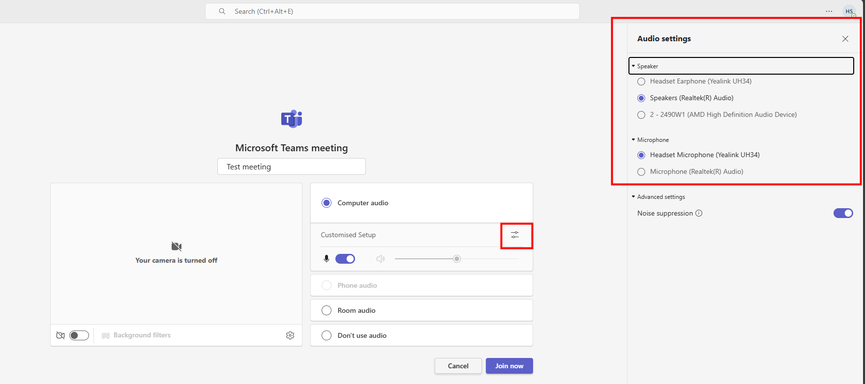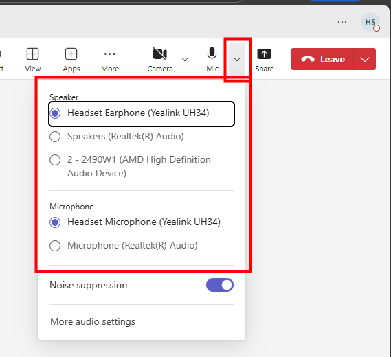 When you join a Teams meeting it's worth checking to make sure Teams has selected the correct audio settings. You can also change these settings once you're in a Teams meeting.