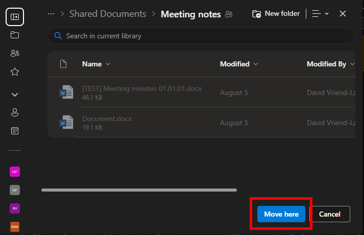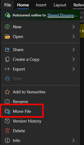 NOTE: Following the steps below will move the file to its new location, meaning anyone who had access to its old location and not its new one will lose access to it. To create a copy of a file, please follow these instructions.